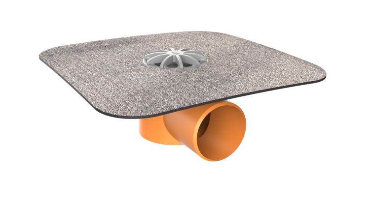 TOPWET balcony outlet with an integrated sleeve of a modified bitumen strip, horizontal version, with a leaf guard.