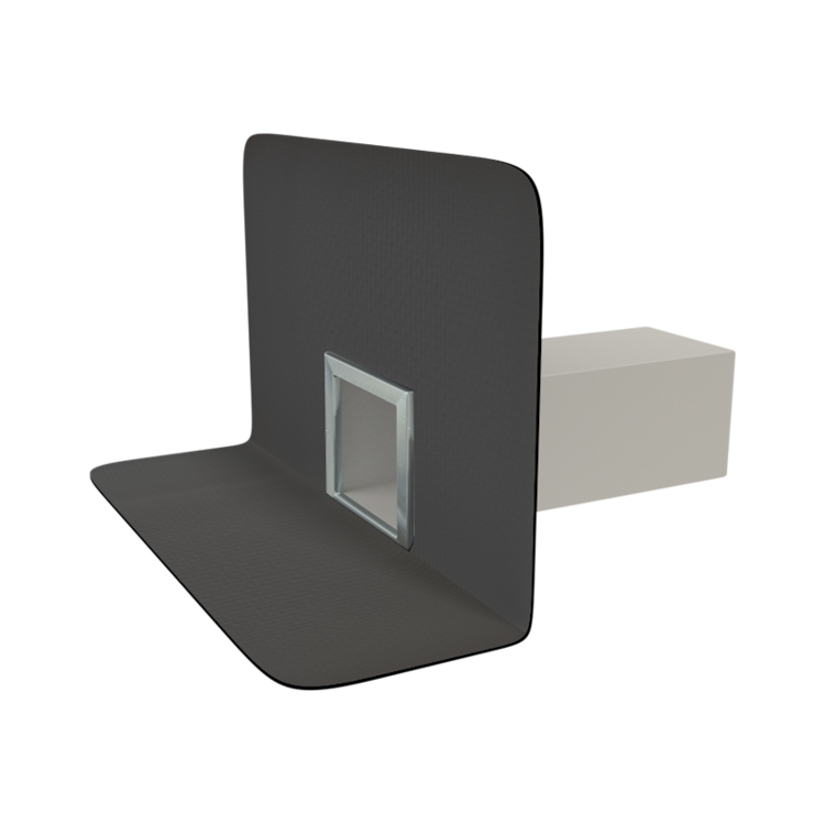 TOPWET squared through wall outlet with an integrated custom made sleeve (EPDM, TPO, FPO, PR, STE - suitable for cold liquid applied applications). Outlet spout material is PVC, white colour. Length 500 mm, option of extension up to 1000 mm on request.